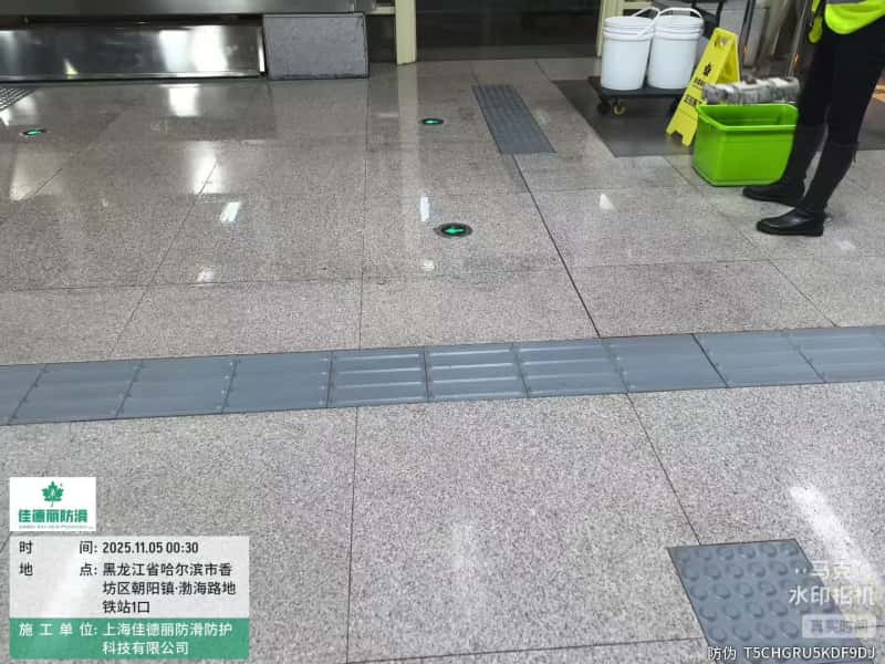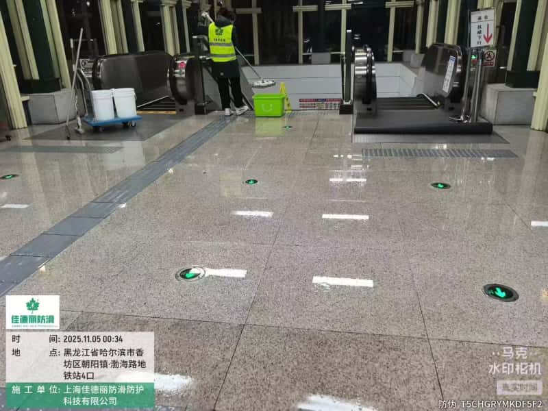 黑龙江省哈尔滨市香坊区朝阳镇·渤海路地铁站防滑施工